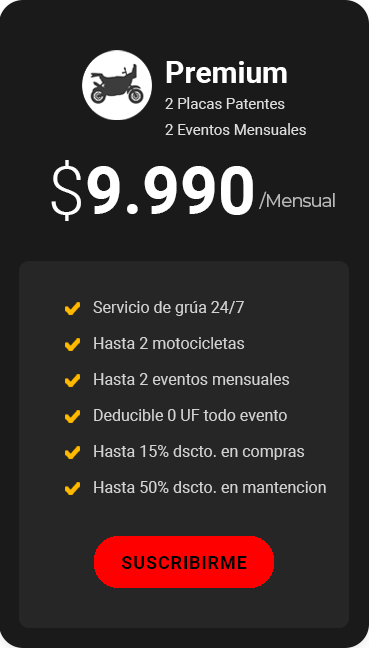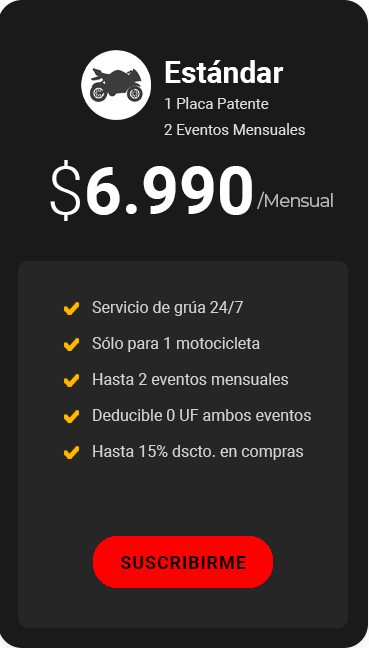 Por menos de 10.000 pesos mensuales Royal Moto Service se compromete a rescatarte a ti y a tu moto, ofreciendo nuestro servicio de grúa y de mecánica express por hasta 2 eventos mensuales, las 24 horas del dia y los 7 días de la semana.